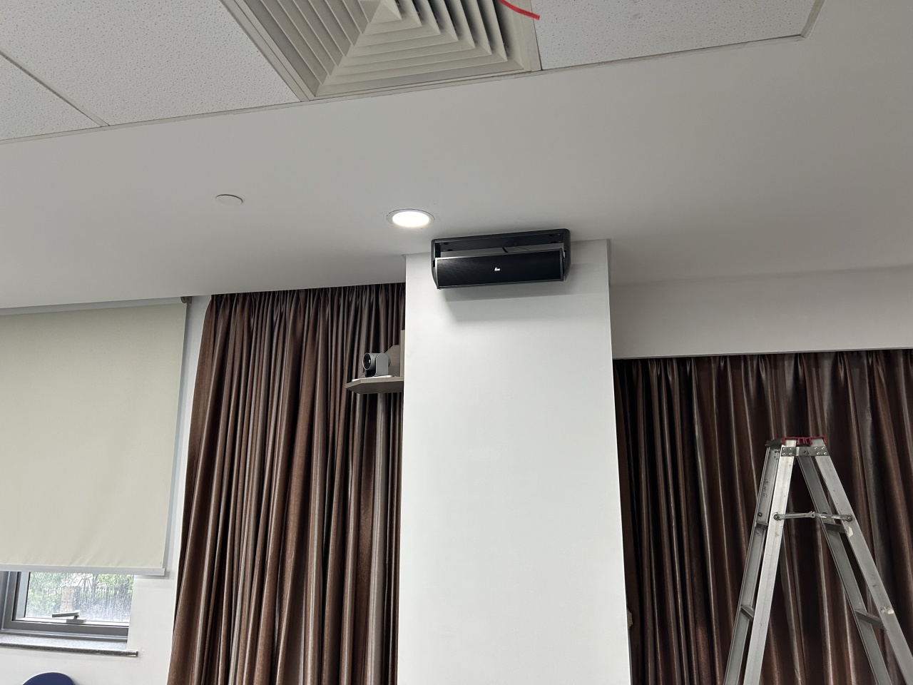 臺達會議室選用了EMX獨有的橫柱型揚聲器作為主音箱。此款揚聲器不僅外形美觀、體積小巧,安裝方便;且有非常好的語言清晰度和能量控制能力,在這樣一個低層高,多硬飾面,建聲不佳的廳堂中仍然能有非常好的擴聲和還音效果。近150平米的會議室僅使用了2只 EMX 501橫柱音響作為主擴聲和2只 EMX 橫柱音響 301作為后區(qū)補聲,全場聲音清晰且飽滿,顯著提高傳聲增益,全場聲壓差不超過2dB,滿足各種大小會議、培訓(xùn)、講演需求,獲得業(yè)主方一致高度好評。